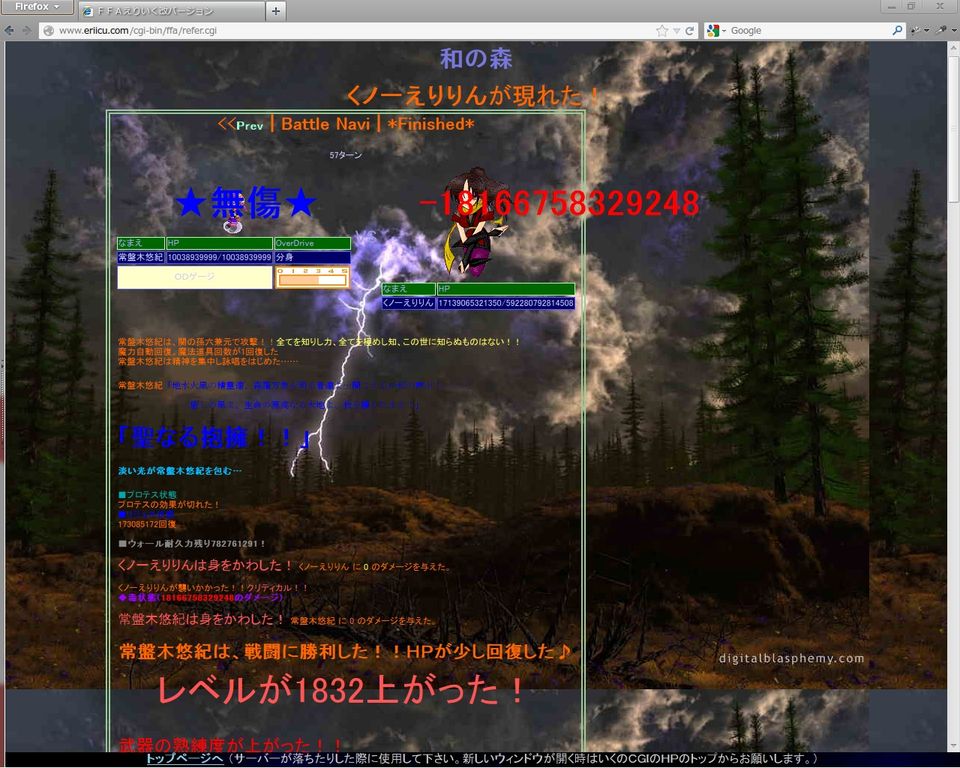 森の番人モルボルB に 477031212000 のダメージを与えた。